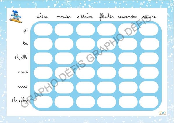 Version écriture, hiver, espace, football et une grille vierge (vous pouvez utilier des formes de base, des contraintes....)