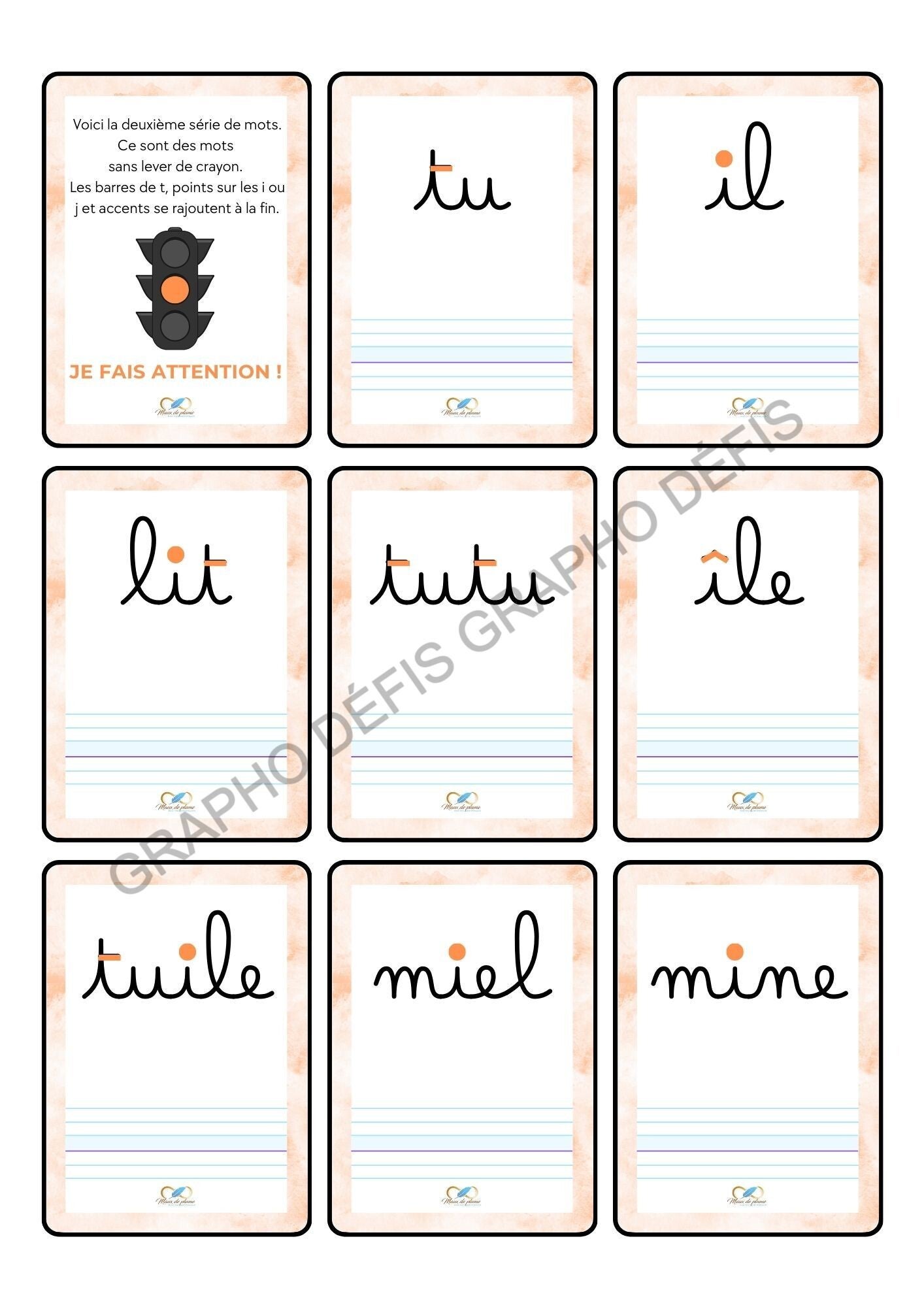 2ème série de mots (58 mots) avec points sur les i, barres de t et accents...