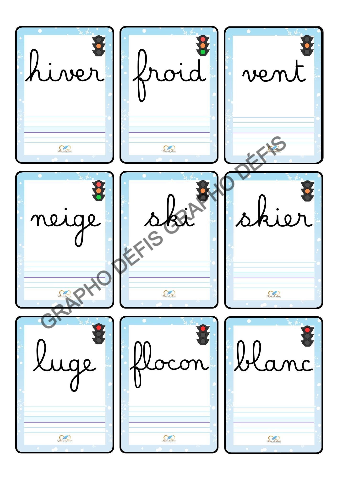 cartes mots thème hiver