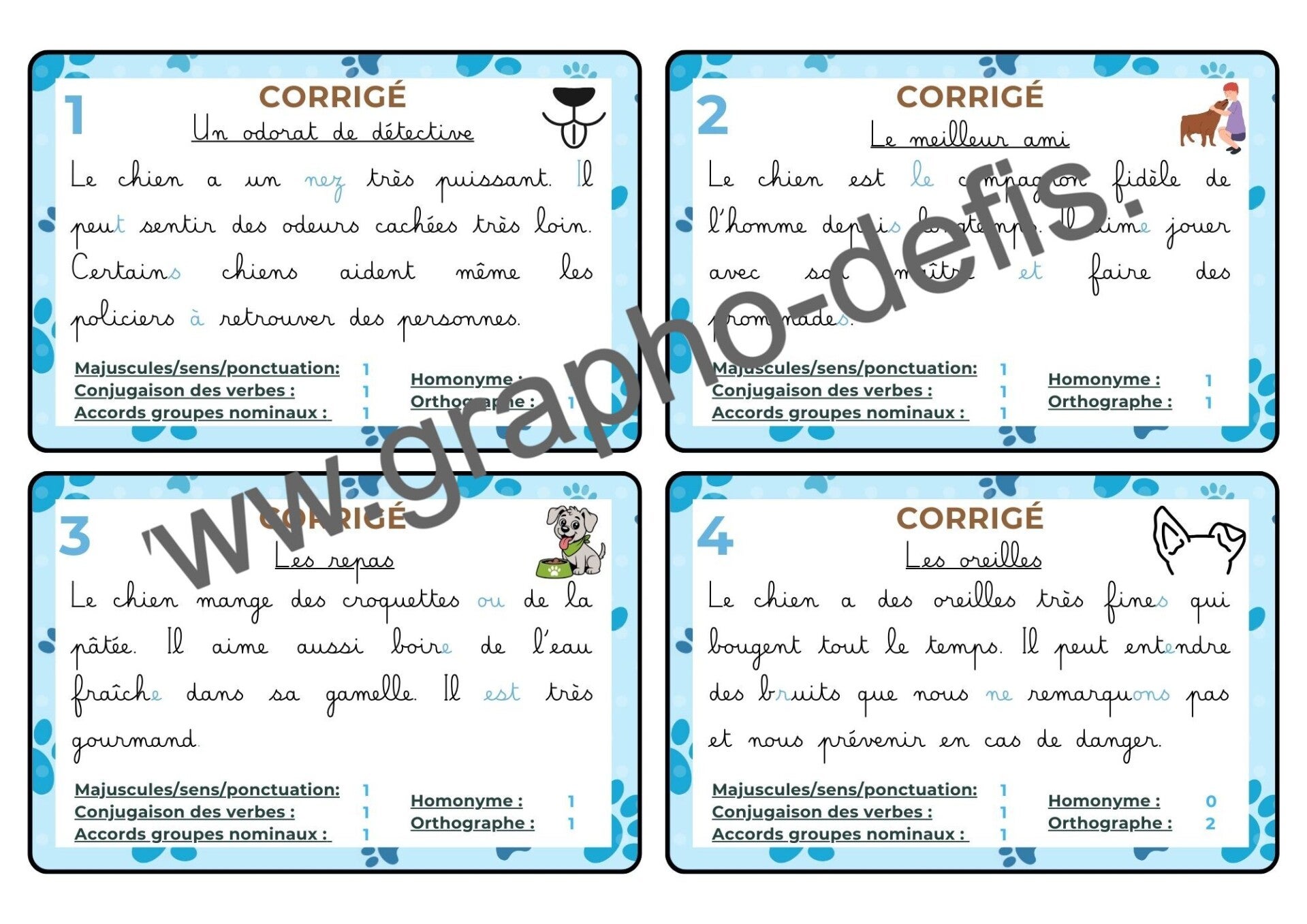 niveaux 1 et 2 sur les caractéristiques et le comportement du chien (5 et 8 fautes à retrouver)