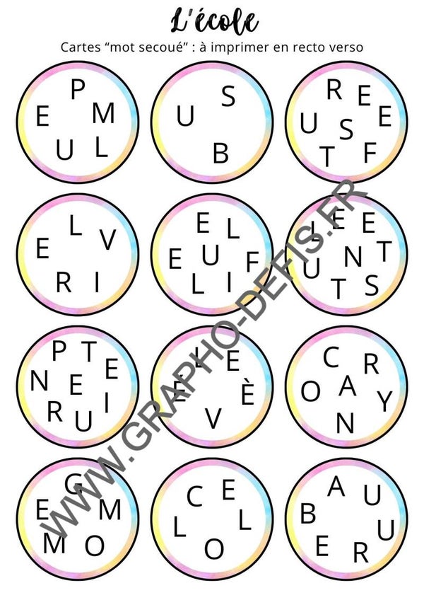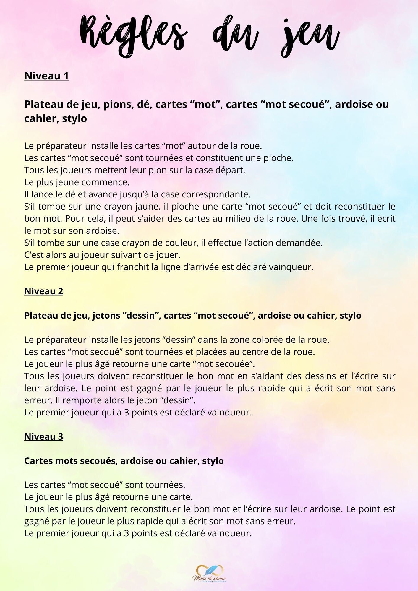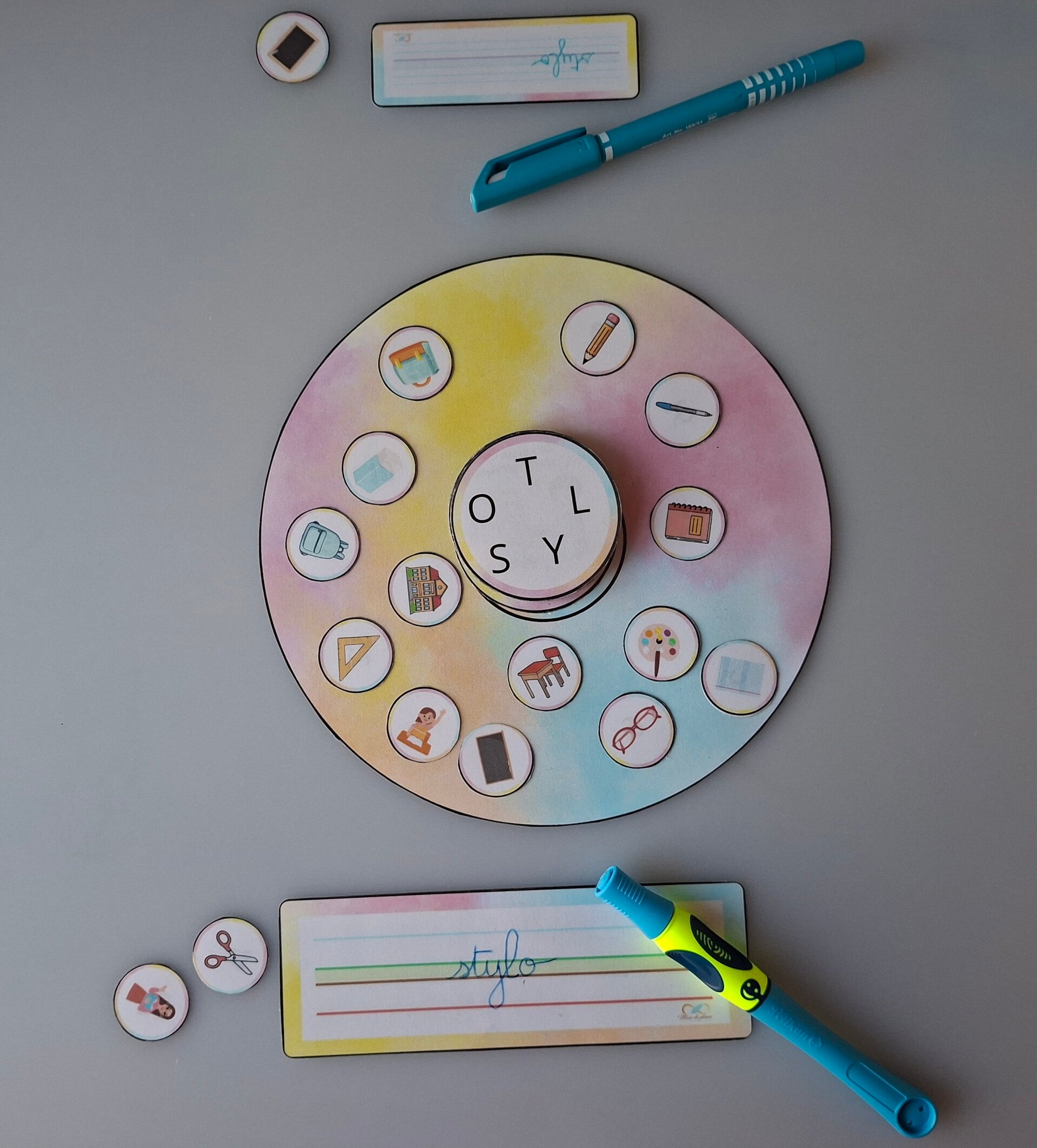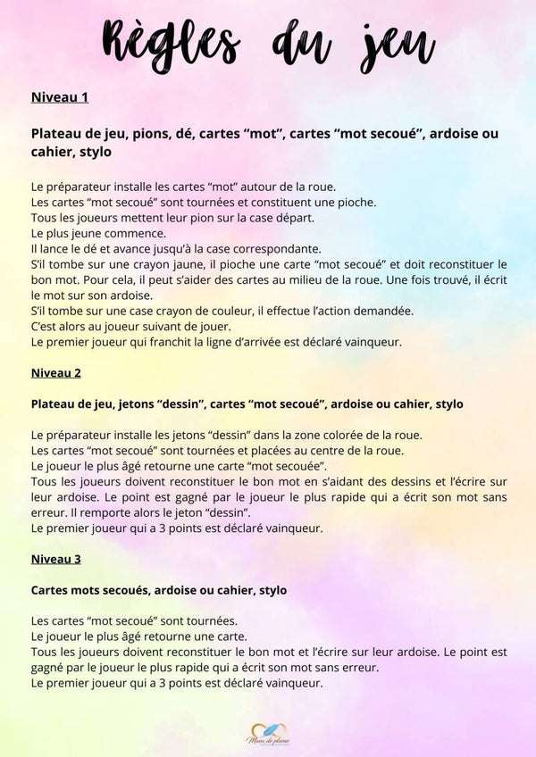 La roue a secoué le mot et toutes les lettres ont été mélangées. A toi de le reconstituer et de le réécrire sans erreur.